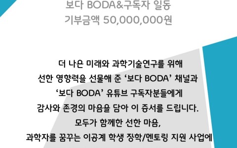 보다 BODA, 과학기술자 양성 위해 키스트미래재단에 5000만원 기부